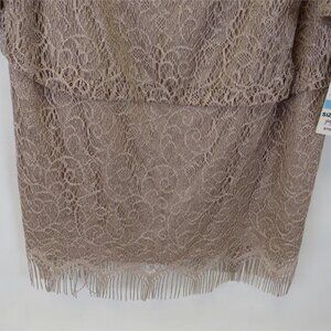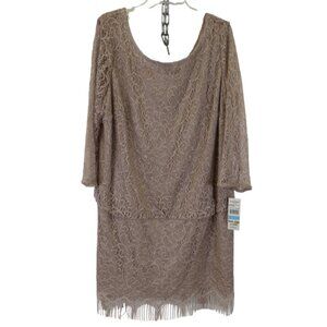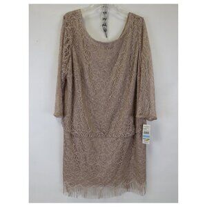 S.L. Fashions NWT Taupe Gold Crochet Blouson Fringe Hem Cocktail Dress, Size 20W