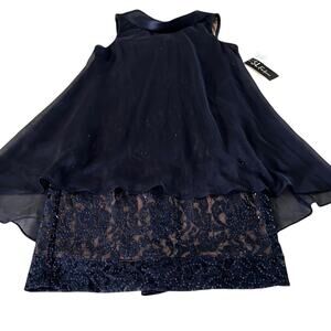 SL Fashions Navy Lace Sequin & Chiffon Special Occasion Dress NWT Size 6 Holiday