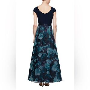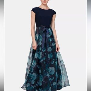 SL Fashions Organza Patterned Gown SL FASHIONS Navy Floral size 12 New