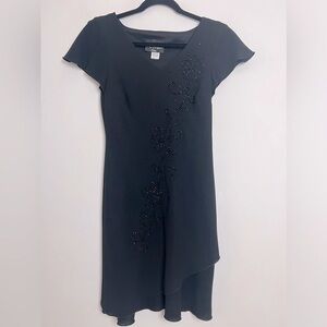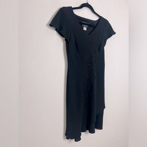 S.L. Fashions Petite Vintage Black Floral Beading Layered Hem 90s Y2K Dress 4P