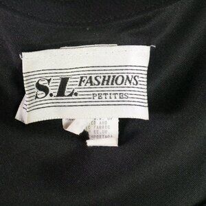 S.L. Fashions Petite Womens Size 14P Black Layered Semi Sher Blouse Pad Shoulder
