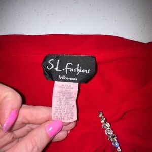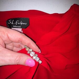 Elegant red skirt set. Features a flowing design. Perfect for special occasions.
