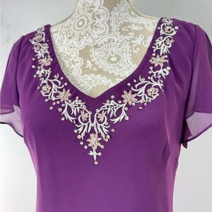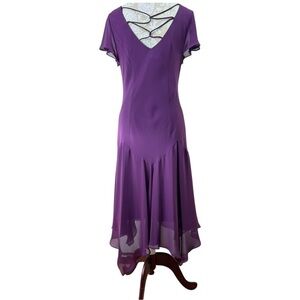 SL Fashions Size 14 Midi Dress Purple Whimsigoth Embroidered Sequin Handkerchief