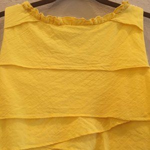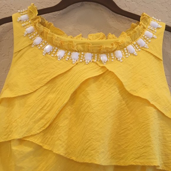SL Fashion Yellow Tiered Dress - Ruffled Beaded Neckline - Side Zip Closure - Fully Lined