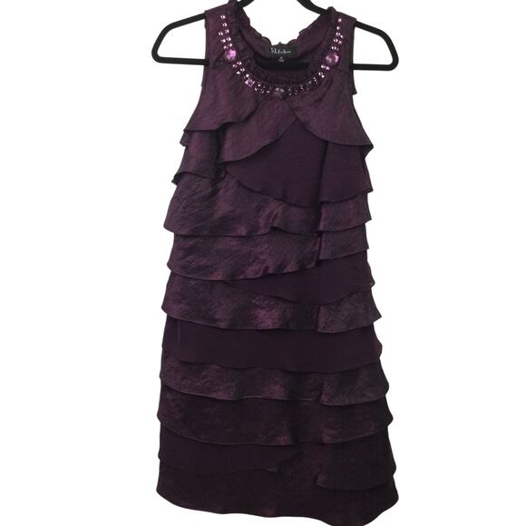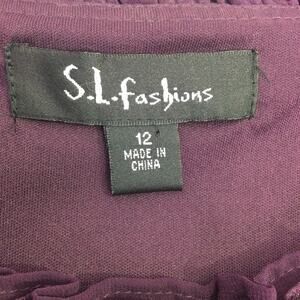 S.L. Fashions Women's Beaded Round Neck Sleeveless Feminine Knee Length Tiered Flounce Holiday Party Elegant Sheath Dress Purple Size 12