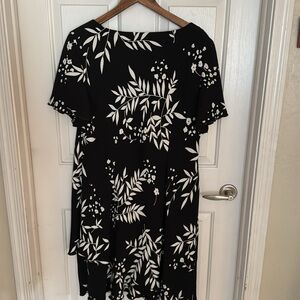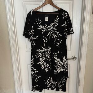 SL Fashions Women’s Petite Black and White Floral Dress SZ 22WP Made in USA