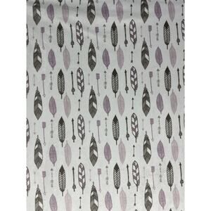 Feather and arrow print baby blanket from SL Home Fashions. Pink and gray. Backside is a pink tribal/geometric print. Preowned in good condition. No stains or holes. Signs of normal wash and wear to fabric.