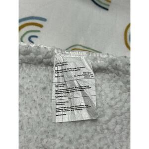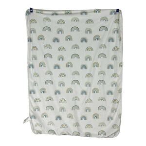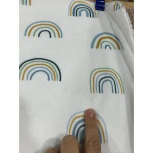 Baby blanket from SL Home Fashions. White with rainbow print, backside is white Sherpa. Preowned with a spot of discoloration and some matting and wear to the Sherpa. Please see pictures.