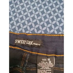Elevate your denim game with these Sweet Look jeans in dark blue. The solid pattern, button and zipper closure, and denim fabric type make these jeans a classic wardrobe staple. The waist is 38 inches and the inseam is 31 inches, with a rise of 11 inches, ensuring a comfortable fit for those with a size 16 waist.