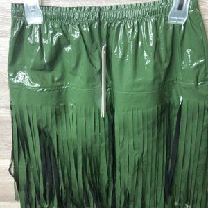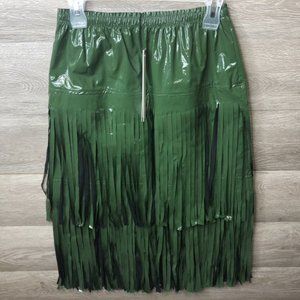 SL Sara Lanzi Women's Size XS Green Vinyl Fringed Skirt NEW