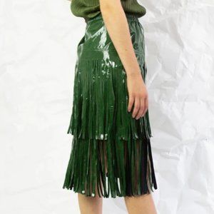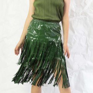 SL Sara Lanzi Size XS Green Vinyl Fringed Skirt