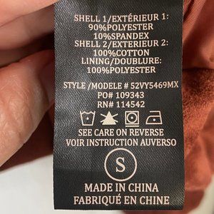 Zip up closure, lined, zippered pockets.