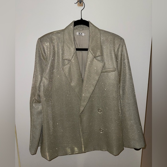 THE PALOMA BLAZER IS MADE FROM A LUXE HIGH SHINE GLITTER FABRIC. FEATURES SLA SIGNATURE TAILORING. THE ULTIMATE SLA GIRL BLAZER