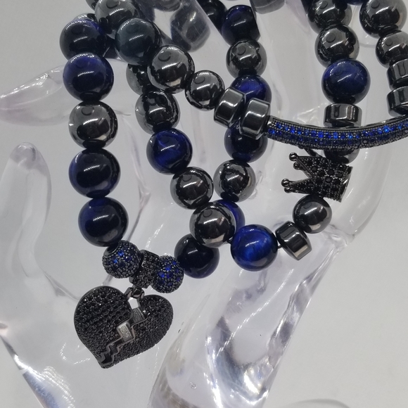 Blue Tiger Eye and Black hematite Broken Heart Charm Trio