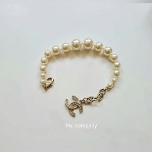 (SLAE)Chanel Crystal CC Logo Pearl Bracelet Brand New