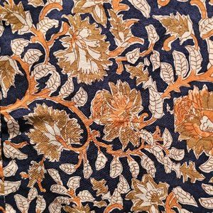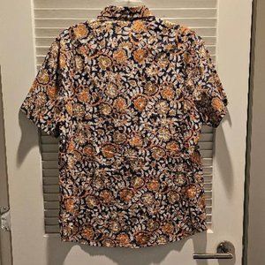 Nice Slate & Stone floral print shirt. Short sleeve and perfect for casual summer wear. Size XXL (although I find it is closer to an XL). Colors are white, muted orange and gold on a blue background. 100% Cotton