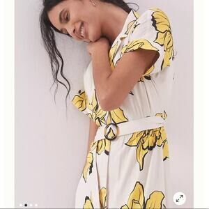 SLATE & WILLOW ANTHROPOLOGY Yellow White Floral Saskia Front Button Dress XS