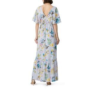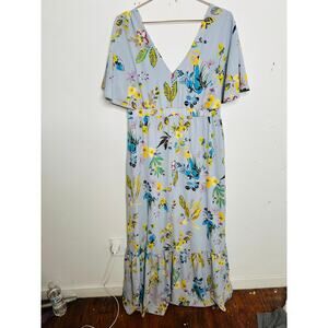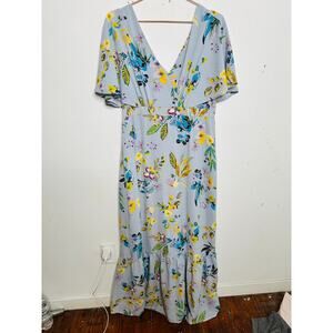 SLATE & WILLOW Blue Floral Dolman Flutter Sleeve V-Neck Loose Fit Maxi Dress M