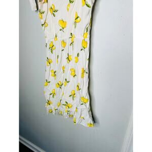 SLATE & WILLOW White Lemon Print Sweetheart Neckline Tie Shoulders Dress Small