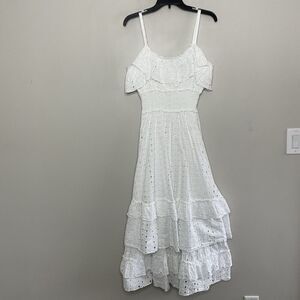 SLATE & WILLOW Ruffle Dress Women Large White Eyelet Midi Tiered 100% Cotton