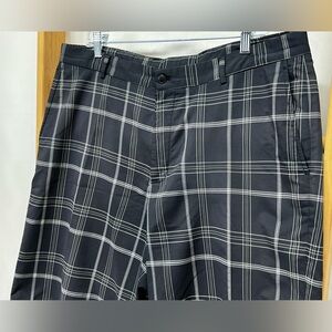 SLAZENGER Men's Black and White plaid flat front golf shorts size 38