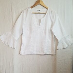 ...S.L.B bell sleeves, 100% linen blouse, small spot on right shoulder.
