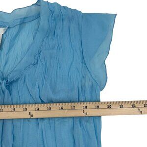 S.L.B. Womens XL Blue Lace Trim Blouse Crinkle Chiffon Y2K Style Short Sleeve
