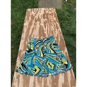 S.L.B abstract women's skirt XL Retro Blue Green Swirl Summer