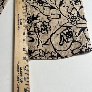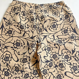 S.L.B.Vintage Silk Floral Print Sz 10 Pants in Beige / Black Capri Inseam: 25"