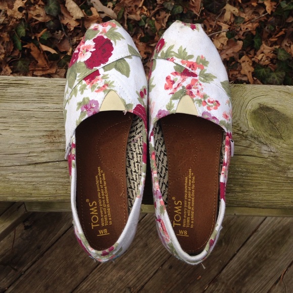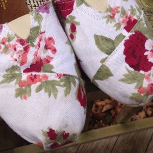 Really cute pattern. White canvas. *These are pre-owned but still in good shape. Slight "staining" on the toe (as shown in picture)-but for being white they are fairly clean and were only worn a handful of times. Size 8. Fits true to size