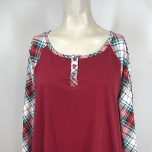 SLEEP BY CACIQUE - WOMEN'S 18/20 - BURGUNDY LONG SLEEVE COTTON BLEND PAJAMA TOP