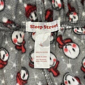 SLEEP STREET Mens Fleece Pajama Lounge Pants Large Grey Smiley Face Snowmen NEW