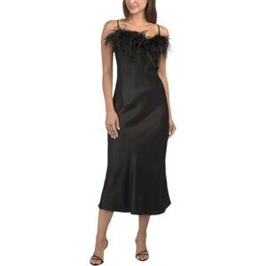 adjustable shoulder straps, satin finish, lightweight and comfortable, ostrich feather detail