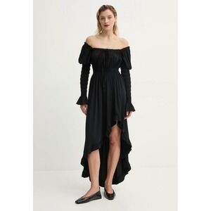 SLEEPER JulietteShirred AsymmetricDress in Black Medium$370