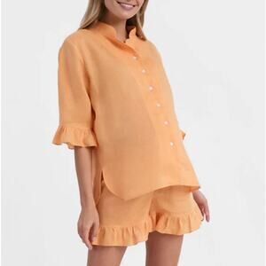 SLEEPER Orange Linen Button Down Top