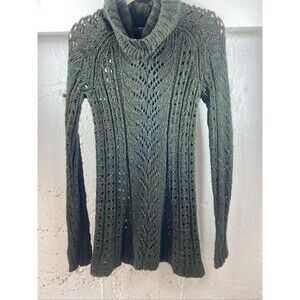 SLEEPING ON SNOW WOMENS SMALL GREEN CABLE KNIT COWL NECK SWEATER DRESS SHORT
