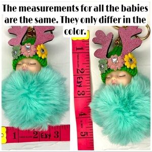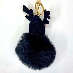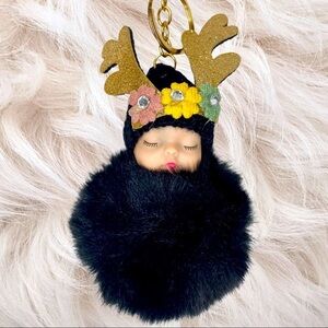 Fashion sleepy baby big pompon charm keychain. Faux fur in black. Accessorized your bag, handbag, backpack or keys with this beautiful baby.