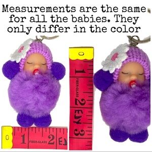 Handmade Sleepy baby with pacifier small pompon in purple keychain charm key holder handbag bag backpack ornament. Item is brand new. Imported.