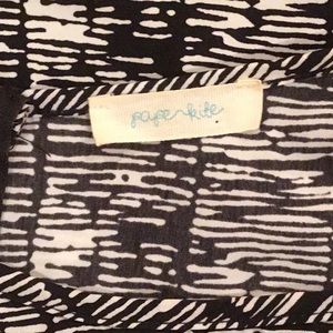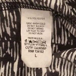 VERY NICE SLEEVELESS TOP OR BLOUSE, DECORATIVE ZIPPER IN THE BACK. GREAT TO WEAR UNDER A JACKET OR SWEATER. COLOR: BLACK AND WHITE DESIGN