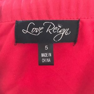 Bright lipstick Red sleeveless Love Reign dress.
