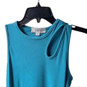 NWT No Comment sleeveless dress with cut out at left shoulder. PTP is 16" not stretched and its 35" from shoulder to hem. I'm 5'2" and it hits right at my knee.