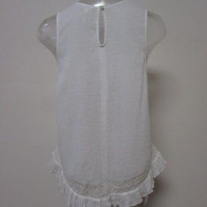 SLEEVELESS WOVEN TOP W/BOTTOM ON BACK RUFFLE DETAIL OFF WHITE