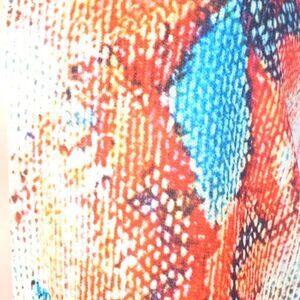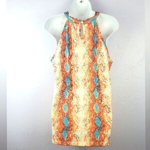 Beautiful print design sleeveless top with buttonhole closure on back. No brand size Large.