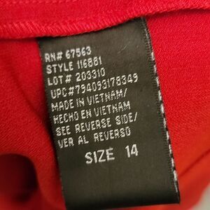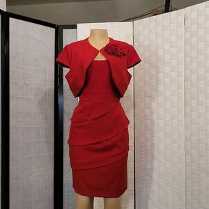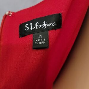 S.L.FASHIONS 2PC SLEEVELESS INVIBLE ZIPPER DOWN BACK DRESS SIZE 14 COLOR RED WITHD ROUND NECKLINE WITH MACHING SHORT SLEEVE JACKET SPLIT IN BOTTOM BACK MADE WITH 95%POLYESTER 5%SPANDEX LINING/FORRO 100%POLYESTER THIS ITEMS IS PRE-OWNED EXCELLENT CONDITION WITH ONLY LIGHT SIGNS OF WEAR IF ANY CHECK THE PICTURES