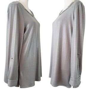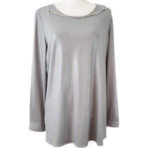 SLIM FACTOR By Investments Silver Shimmer Blouse - Women's M