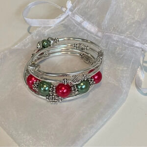 SLINKY BRACELET Women’s Slinky Bracelet with Charms and Beads Red and Green