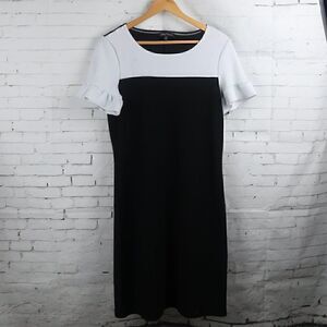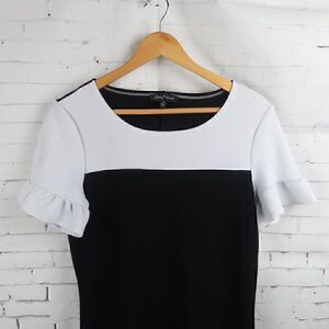 BLACK & WHITE COLORBLOCK ROUND NECK RUFFLE SLEEVE SHIFT DRESS SIZE SMALL BY SLINKY BRAND PRE OWNED NO FLAWS