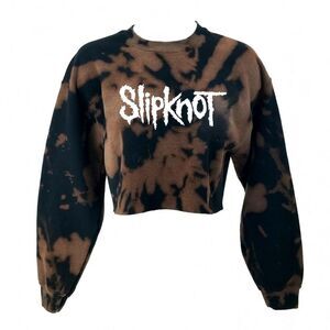 SLIPKNOT Acid Wash, Distressed "Cropped" Crop Top Long Sleeve Crewneck Sweatshirt. Size: Small, Medium, Large and XL
