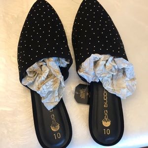 Who said you can’t stay home and look pretty these slippers are really nice with a little specs of gold dots. Nice enough to wear out.?