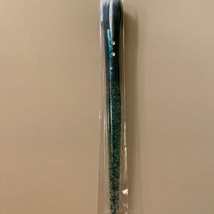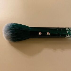 Fun and glittery round blusher/bronzer brush in an emerald green color. Synthetic. Use with dry, wet, and cream pigments.